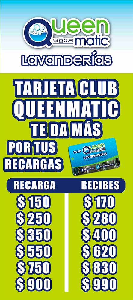 Accede a todos los beneficios adquiriendo tu Tarjeta Club Queenmatic con valor de tan solo $25.00, vigencia permanente.